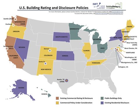 According to the nonprofit Institute for Market Transformation, building rating and disclosure policies continue to spread throughout the U.S. Few governments require asset rating, but DOE's move toward a national asset rating program that costs very little to implement and pairs with Energy Star Portfolio Manager could change that.