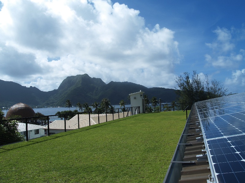 Photovoltaic systems are mounted on the roof of the American Samoa EPA office.