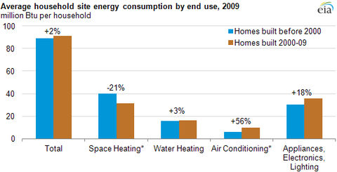 Homes built since 2000 tend to be larger and contain more appliances than older homes, so despite efficiency gains they consume 2% more energy on average.