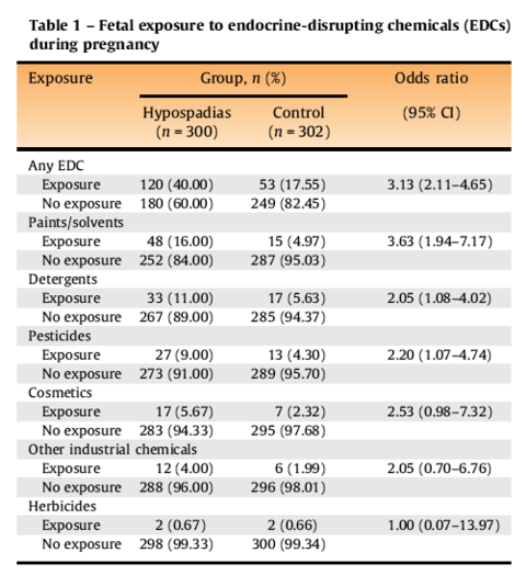 Kalfa N, et al. Is Hypospadias Associated with Prenatal Exposure to Endocrine Disruptors? AFetal exposure to endocrine-disrupting chemicals (EDCs) during pregnancy