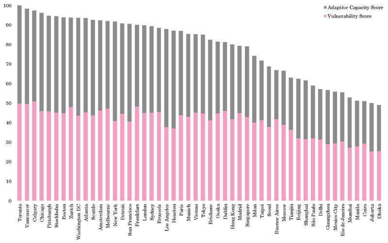 Grosvenor ranked 50 of the world’s cities for their social and environmental vulnerability and adaptive capacity in order to measure which ones are most resilient.