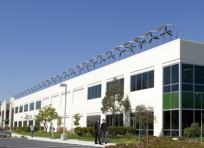 Caps for tax credits for several technologies, including small wind turbines like these from AeroVironment (shown in a potential configuration), were removed in the 2009 economic stimulus bill.