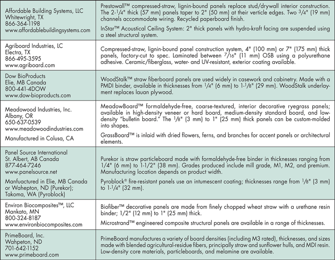 Domestic Manufacturers of Strawboard Products