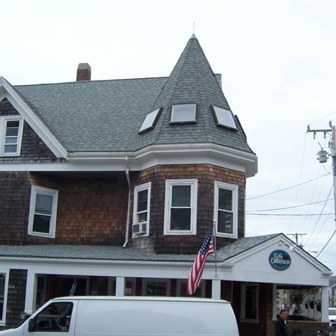 The guidelines use illustrated examples of both “recommended” and “not recommended” sustainability upgrades for historic buildings. The photograph above demonstrates how the “not recommended” practice of installing skylights on primary roof elevations damages the historic character of this home.
