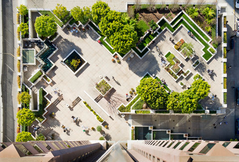 The outdoor plaza at 100 First Street in San Francisco. This is a Kilroy Realty building which was awarded a Fitwel 2 Star Rating. Kilroy Realty is a Fitwel Champion and also the 2017 North American office leader in sustainability recognized by GRESB.